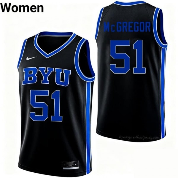 Jared McGregor #51 Black BYU Cougars Licensed Basketball Jersey | Women's University Premium Uniform 64vU1yHq